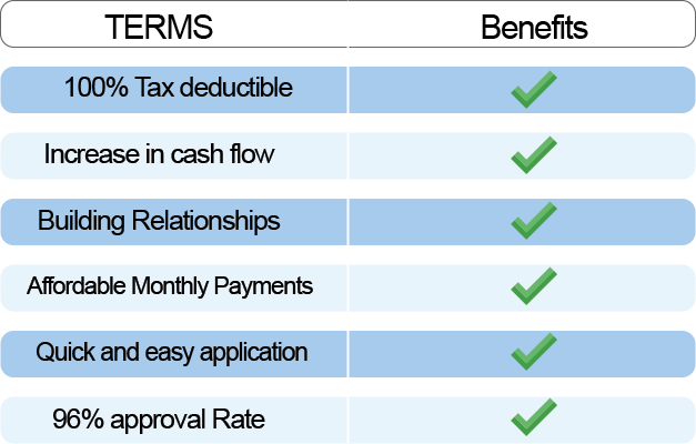 As a business owner you know the importance of cash flow. Cash flow allows a business to make better investment decisions which can lead to the success of a corporation. Financing restaurant equipment lets you invest your money in higher dividend places such as: rent, supply, employees and more. Take advantage of payment off your restaurant equipment in terms up to 36 months.