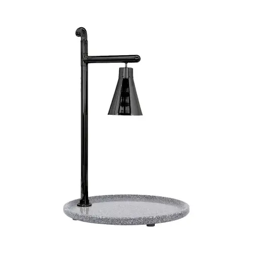 Prepare your hot food while keeping it warm with the Buffet Enhancements 010HCL-GG24RDBL 24" classic carving station! This carving station features a round gray granite base that accommodates a variety of foods and dishes, and the attached black heating lamp utilizes a shatter resistant bulb to ensure your food is both hot and safe. Please consult the Specification Sheet for additional details.