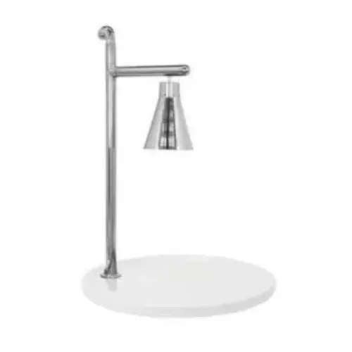 Prepare your hot food while keeping it at foodsafe temperatures and ready to eat with the Buffet Enhancements 010HCL-WG24RDSS 24" classic carving station! This carving station features a round white granite base that accommodates a variety of foods and dishes, and the attached copper lamp utilizes a shatter resistant bulb to ensure your food is both hot and safe. Please consult the Specification Sheet for additional details.