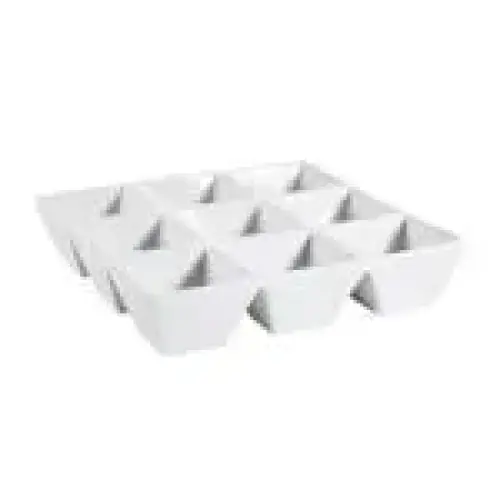 The C.A.C. China CMP-SQ9 - CMP Divided Tray 9" - (1 Dozen per Case) is an essential item to have in any establishment that holds large to medium size bowls, and sauce dishes. This Tray comes in a case of 1 dozen.