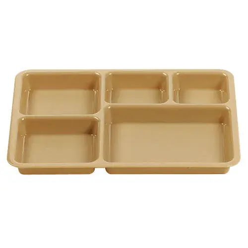 This Cambro 10-11/16" x 13-7/8" Co-Polymer Compartment Tray [14105CP-167] is ideal for any cafeteria-style meal. This 5 compartment tray holds plenty of food and can keep hot and cold foods separate. The tray is made using co-polymer plastic which is break-resistant. This tray is for general use and can be used any place with a cafeteria. Comes in a set of 24.