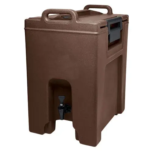 The Cambro 10 1/2 gal. Beverage Carrier - Ultra Camtainer [UC1000-157] is a great container for holding, transporting and serving beverages. The container is made with polyethylene plastic in one piece which increases its durability and heat-retention properties. The interior of the container has thick foam insulation which helps regulate heat loss incredibly well. The design of this container makes it easy to transport and easy to store. This model [UC1000] comes in a variety of colors.