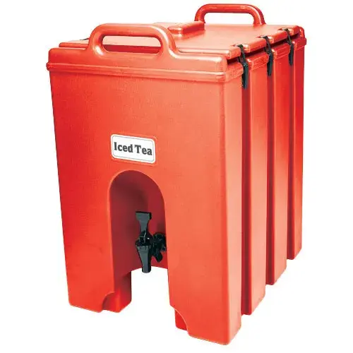 The Cambro 11 3/4 gallons Beverage Carrier - Camtainer [1000LCD-186] is a great container for holding, transporting and serving beverages. The container is made with polyethylene plastic in one piece which increases its durability and heat-retention properties. The interior of the container has thick foam insulation which helps regulate heat loss incredibly well. The design of this container makes it easy to transport and easy to store. This model [1000LCD] comes in a variety of colors.