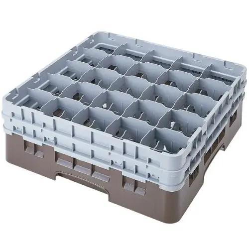 This Cambro 17-Compartment Half-Size Stemware & Tumbler Glass Rack - Camrack [17HS638-184] is a dish rack for cups with 17 compartments. Each compartment can hold a cup with a max diameter size of 3.5 inches and a max height of 6.88 inches. This rectangle shaped cup rack fits in most commercial dish washers and makes cleaning cups and other glassware extremely easy. Thanks to the polypropylene plastic used in this construction, this cup rack is extremely durable and heat resistant.