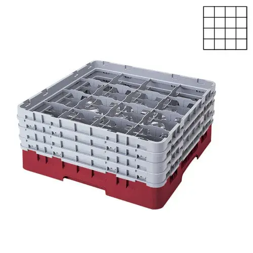 This Cambro 17-Compartment Half-Size Stemware & Tumbler Glass Rack - Camrack [17HS958-416] is a dish rack for cups with 17 compartments. Each compartment can hold a cup with a max diameter size of 3.5 inches and a max height of 10.13 inches. This rectangle shaped cup rack fits in most commercial dish washers and makes cleaning cups and other glassware extremely easy. Thanks to the polypropylene plastic used in this construction, this cup rack is extremely durable and heat resistant. Comes in a set of 2.