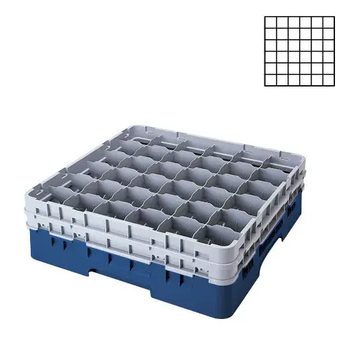 This Cambro 3.5" Half-Size Stemware & Tumbler Glass Rack - Camrack [10HS318-184] is a dish rack for cups with 10 half-size compartments. Each compartment can hold a cup with a max diameter size of 3.5" and a max height of 3.63". This rectangle shaped cup rack fits in most commercial dish washers and makes cleaning cups and other glassware extremely easy. Thanks to the polypropylene plastic used in this construction, this cup rack is extremely durable and heat resistant. Comes in a set of 5.