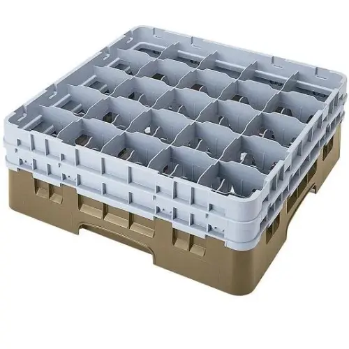 This Cambro Stemware & Tumbler Glass Camrack [20S1114-416] is a dish rack for cups with 20 compartments. Each compartment can hold a cup with a max diameter size of 3 7/8 inches and a max height of 11 3/4" inches. This square shaped cup rack fits in most commercial dish washers and makes cleaning cups and other glassware extremely easy. Thanks to the polypropylene plastic used in this construction, this cup rack is extremely durable and heat resistant. Comes in a set of 2.