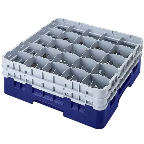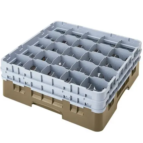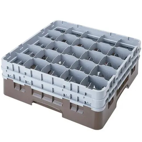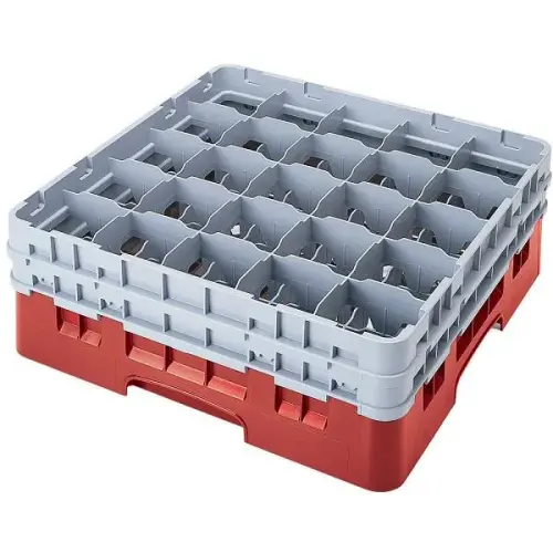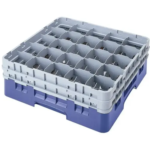 This Cambro Stemware & Tumbler Glass Rack - Camrack [20S800-186] is a dish rack for cups with 20 compartments. Each compartment can hold a cup with a max diameter size of 3 7/8 inches and a max height of 8 1/2 inches. This square shaped cup rack fits in most commercial dish washers and makes cleaning cups and other glassware extremely easy. Thanks to the polypropylene plastic used in this construction, this cup rack is extremely durable and heat resistant. Comes in a set of 2.