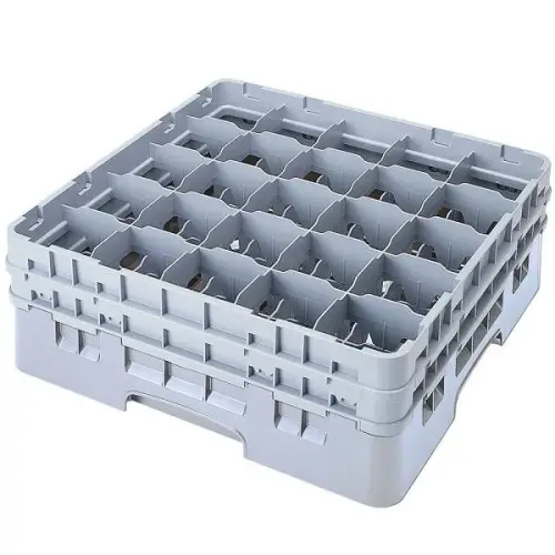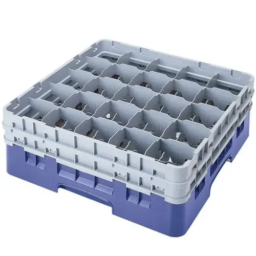 This Cambro Stemware & Tumbler Glass Rack - Camrack [20S638-186] is a dish rack for cups with 20 compartments. Each compartment can hold a cup with a max diameter size of 3 7/8 inches and a max height of 6 7/8 inches. This square shaped cup rack fits in most commercial dish washers and makes cleaning cups and other glassware extremely easy. Thanks to the polypropylene plastic used in this construction, this cup rack is extremely durable and heat resistant. Comes in a set of 3.