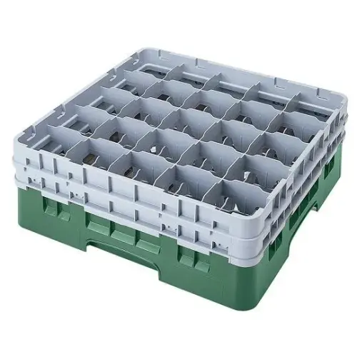 This Cambro Stemware & Tumbler Glass Rack - Camrack [20S434-184] is a dish rack for cups with 20 compartments. Each compartment can hold a cup with a max diameter size of 3 7/8 inches and a max height of 5 1/4 inches. This square shaped cup rack fits in most commercial dish washers and makes cleaning cups and other glassware extremely easy. Thanks to the polypropylene plastic used in this construction, this cup rack is extremely durable and heat resistant. Comes in a set of 4.
