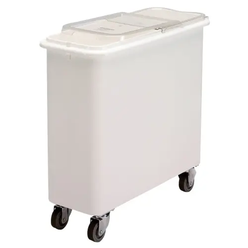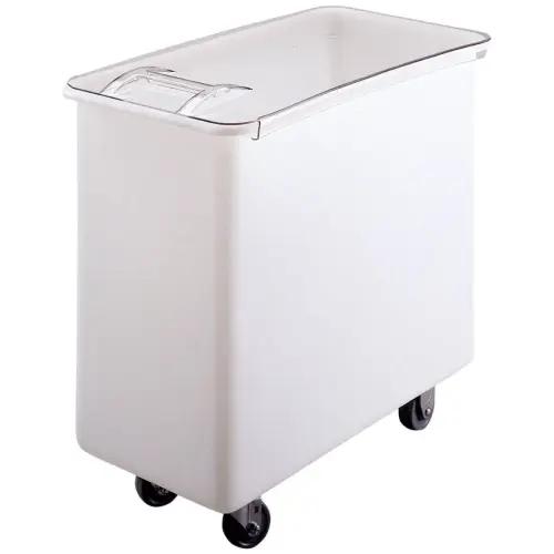 The Cambro 36 gallon Ingredient Bin w/ Flat Top [IB44-148] is the perfect bin for storing dry ingredients in bulk. It comes with a clear top for easy identification of its contents and casters on the bottom for mobility. This model also comes with a S-Hook on the front of the bin for hanging scoops (Scoop not included in purchase).
