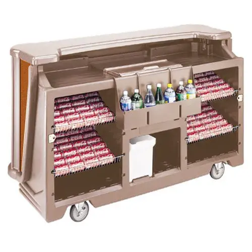This 78" Designer Pre-Mix Portable Bar - Cambar [BAR730DSDX-667] from Cambro is a small, all-purpose and economical portable bar. The bar is made using polyethylene plastic which will not suffer from wear and tear. Furthermore, the bar is built in an easy to take apart fashion. Overall, this bar is built to last while remaining aesthetically appealing and affordable. This model also comes with plenty of components. There is a speed rail for bottles, a high capacity ice bin, cold plate circuits, a soda gun and four swivel casters, two of which have brakes.