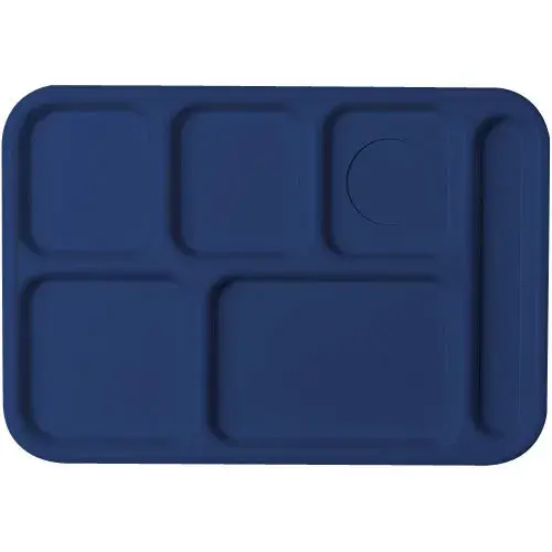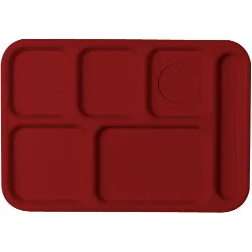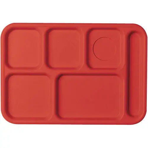 This Cambro 9" x 15" Polycarbonate Compartment Tray - Camwear [1596CW-168] is ideal for any school cafeteria meal. This 5-compartment tray holds plenty of food and can keep hot and cold foods separate. The tray is made using polycarbonate which is incredibly tough and hard to break. This tray is for general use and can be used any school with a cafeteria. It comes enlarged handles on the sides for easier gripping. Up to 18 trays of this model can fit inside any standard size peg rack for washing. Comes in a set of 24.