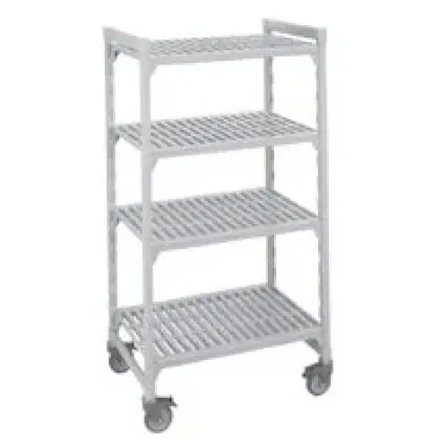 This Cambro Camshelving Mobile Shelving Unit w/ Standard Casters [CSURS48366-480] contains everything required for constructing a fully mobile shelving unit. Included are 4 posts, 8 traverses and 4 post connectors which is enough to construct an extra sturdy shelving unit. The shelves are dishwasher safe and can be removed from the unit for maintenance. Also included with this item are 4 standard casters, 2 of which have brakes.