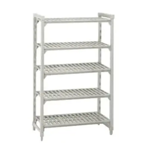 This Cambro Camshelving Shelving Unit [CSU58426-480] contains everything required for constructing a Camshelving unit. Included are 4 posts, 10 traverses and 4 post connectors which is enough to construct an extra sturdy shelving unit. The shelves included with this unit are vented and are easy to maintain. They are dishwasher safe and can easily be removed from the unit. This model has 5 shelves, pictured is the 4 shelf model.