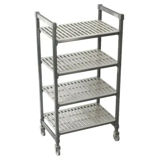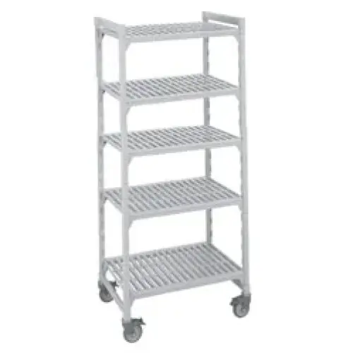 This Cambro Camshelving Mobile Shelving Unit w/ Standard Casters [CSURS51486-480] contains everything required for constructing a fully mobile shelving unit. Included are 4 posts, 8 traverses and 4 post connectors which is enough to construct an extra sturdy shelving unit. The shelves are dishwasher safe and can be removed from the unit for maintenance. Also included with this item are 2 non-corrosive swivel locking casters and 2 total locking casters for a total 4 premium locking casters.