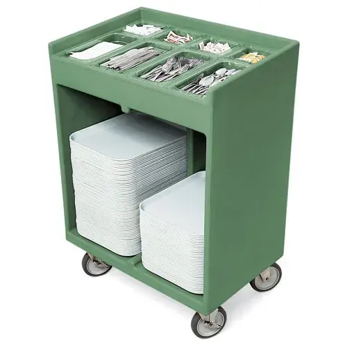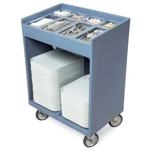 The Cambro Plastic Adjustable Dish Caddy [ADCS-131] is a great tool for transporting your trays and utensils together. This cart comes 4 adjustable columns for holding dishes. It can be adjusted to hold up to 6 columns. This cart has a capacity of 500 lbs altogether. The plastic used in the construction is top quality and is guaranteed to last a long time even under heavy use.