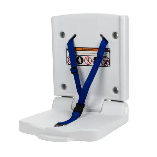 The Continental 8252 - Child Safety Seat features a fold-able concave seat area with a three point safety harness to safely secure children off of the restroom floor. It’s made out of bacteria inhibiting Derma-Tek polyethylene for excellent hygiene. For superior strength and lasting durability, the Continental 8254 attaches to a 1" thick steel partition with four machine screws. When properly installed, it’s ADA compliant and holds up to 50 lbs. of static weight. Includes easy to read ANSI compliant labels (ANSI Z535.3 and ANSI Z535.4). Elite Restaurant Equipment ensures the durability and quality of this product.