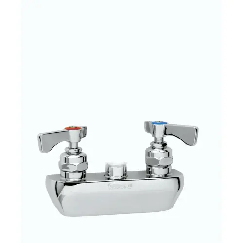 This Krowne 14-4XXL - Royal Series 4" Center Wall Mount Faucet Body - No Spout is simple and classic in design. It has been constructed out of high quality steel. Made using advanced welding techniques, this sink faucet is a one-piece, seamless faucet unit with with a hot and cold nob to release water. There are two nobs one on the left side of the faucet and one on the right. This sink faucet is perfect for any sink and is generally used for commercial sinks. This item will prove to be a great investment for your food service establishment.