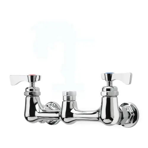 This Krowne 14-8XXL - Royal Series 8" Center Wall Mount Faucet Body - No Spout is simple and classic in design. It has been constructed out of high quality steel. Made using advanced welding techniques, this sink faucet is a one-piece, seamless faucet unit with with a hot and cold nob to release water. There are two nobs one on the left side of the faucet and one on the right. This sink faucet is perfect for any sink and is generally used for commercial sinks. This item will prove to be a great investment for your food service establishment.