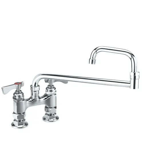 This Krowne 15-418L - Royal Series 4" Center Raised Deck Mount Faucet - 18" Jointed Spout is simple and classic in design. It has been constructed out of high quality steel. Made using advanced welding techniques, this sink faucet is a one-piece, seamless faucet unit with with a hot and cold nob to release water. There are two nobs one on the left side of the faucet and one on the right. This sink faucet is perfect for any sink and is generally used for commercial sinks. This item will prove to be a great investment for your food service establishment.
