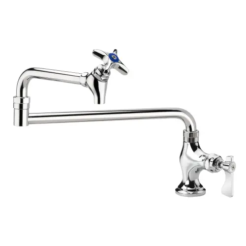 Krowne Royal Series Deck Mount Pot Filler Faucet, 12"Jointed Spout with Shut-Off Valve, Cross Handle, Ceramic Cartridge Valves, Wall Mounting Kit Included, Low Lead Compliant. 12" jointed spout with shut-off valve. Fits in 3/4" hole. 1/2" NPS male inlet. Ceramic cartridge valves. Deck mounting kit included. Low Lead Compliant. Elite Restaurant Equipment ensures that this product, 16161L, is easy to use and install.