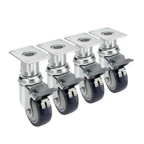 This item Krowne 28160S - 6"-7" Adjustable Height 2-3/8" x 3-5/8" Plate Caster - 3" Wheel - Set of 4 |