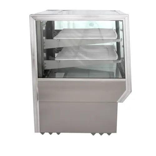 This flat glass bakery display unit is great for any food service business in need of a refrigerated bakery display unit. There is glass all around so the visual of your baked goods are highly visible for the consumer. i approve this item.