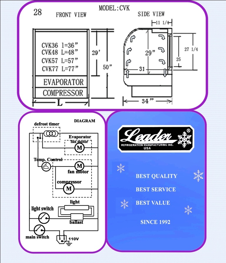 This is not my first leader bakery case. I like the design and built, it's built to last. Everything on this machine is god except when it arrived there was a small ding. I was not pleased to see it. This must've happened in transit, they should be handling the bakery case more carefully. The damage is only cosmetic and its not big but when i buy something new i expect brand new. I was not able to see the ding when inspecting the delivery, because it was small i only noticed it when it was fully un-packaged. Not for nothing though, this is a good machine have it for 18+ months now and works and looks good.