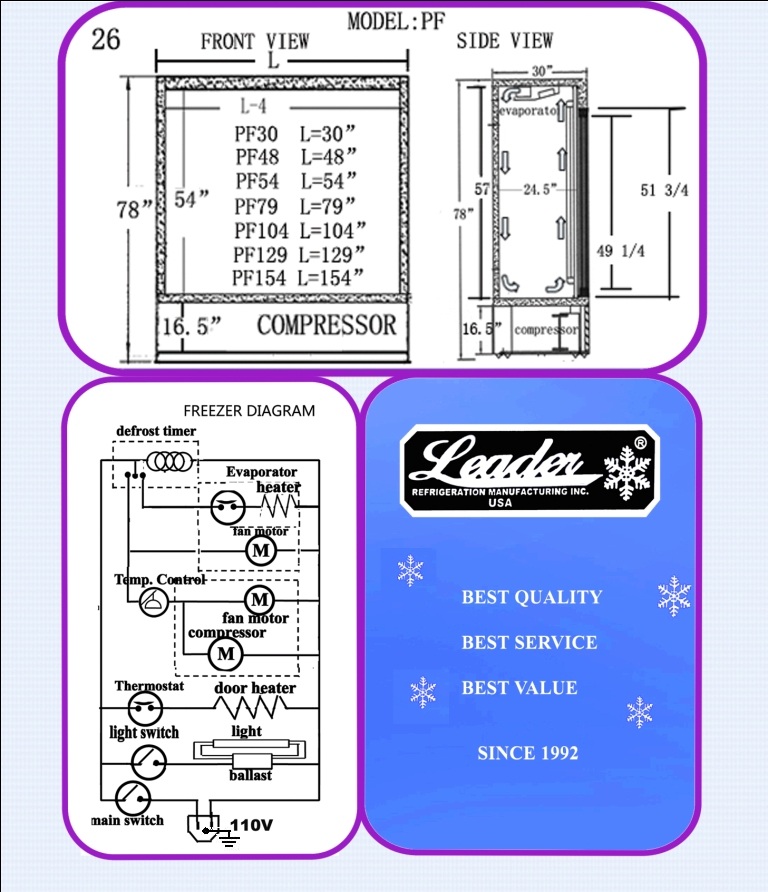 | Item: | Leader PF54 - 54" Swinging Glass Door Reach In Freezer |