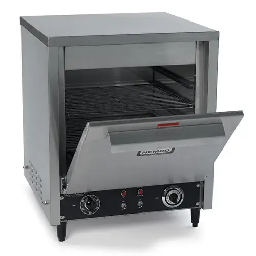 This Countertop Deck Oven [6200] is ideal for serving areas, delis or in-store sampling. Perfect for cooking pizzas, cookies, toasted sandwiches and fresh breads. Stainless steel construction with stainless steel deck. Tubular top and bottom heating elements with separate on/off switches. Manual 60-minute bell timers. Includes (2) 151⁄8"Wx141⁄4"D racks. Each rack holds up to a 12" pizza, can hold up to 4 racks total. +300°F to +700°F temperature range. 120V. 6' cord and plug included. 191⁄2"Wx22"Dx233⁄4"H. 65 lbs. ONE YEAR PARTS AND LABOR WARRANTY