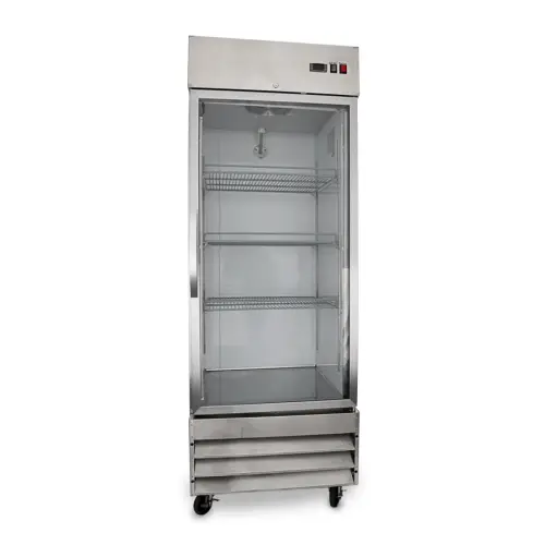This 25" Reach-In Glass Door Refrigerator True T-19G is a wonderful addition to your commercial kitchen. It features stainless steel construction and has 1 full-sized swinging stainless steel door. The door is designed to ease user fatigue. This unit includes 3 internal adjustable shelves can hold a great quantity of your kitchen essentials. The shelves are made from heavy-duty polyethylene-coated wires. The refrigerator holds anywhere from 33°F to 38°F for the best in food preservation. You will be overall satisfied by this unit.