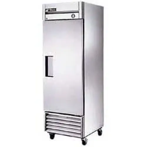 This 27" Reach-In Solid Door Refrigerator Series True T-23 is a wonderful addition to your commercial kitchen. It features stainless steel construction and has 1 swinging door. The door are designed to ease user fatigue. This unit includes three internal adjustable shelves can hold a great quantity of your kitchen essentials. The shelves are made from heavy-duty polyethylene-coated wires. The refrigerator holds 33-38°F for the best in food preservation. You will be overall satisfied by this unit. This item is perfect for any food service or commercial restaurant establishment.