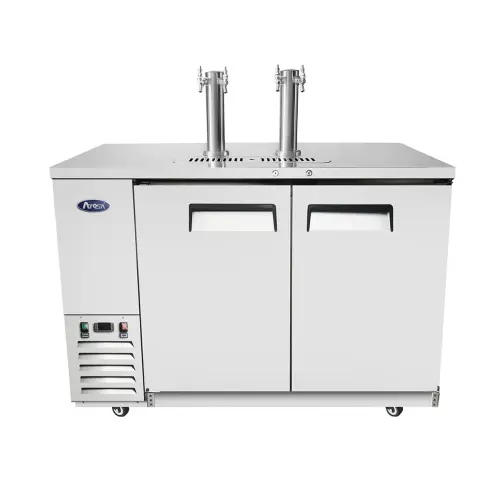 The Atosa MKC58 - 58" Dual Faucet Beer Dispenser Keg Cooler - Stainless Steel is a great way to serve ice cold, crisp draft beer without building out a custom tap system that can cost a fortune. Easily fill pint glasses and pitchers with all types of microbrews, and other brews. This beer dispenser / kegerator is made with a stainless-steel top, which makes it easy to clean and durable.
