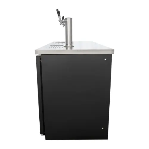 This beer dispenser / kegerator is made with a black finish and 1 ½” thick stainless-steel top, which makes it easy to clean and durable.