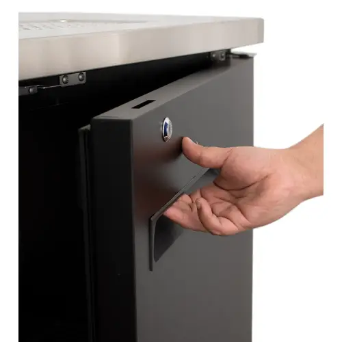 This model holds a (3) 1/2 kegs of beer that is stored behind a stay-open and self-closing door. This helps your employees load product without the door closing on them and ensures the door closes appropriately when quickly reaching in without fully opening it. The tight seal prevents energy loss and the locks prevent theft during off hours.