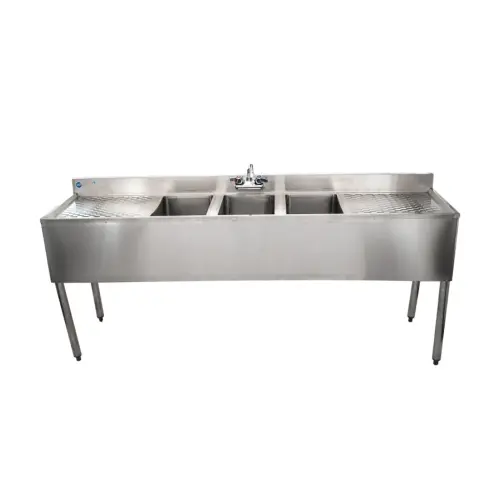 The Universal 10” low lead underbar sink faucet is great for clean up tasks in the kitchen. This wall mount faucet is compatible with all stand up commercial sinks that require a wall mount faucet. The flow rate of the faucet is 2 GPM, the connection is 1/2” NPT. The flow rate will fill up a sink quickly, great for dish washing or other cleaning tasks. This wall mount swing spout faucet fits 4” center holes on a sink.