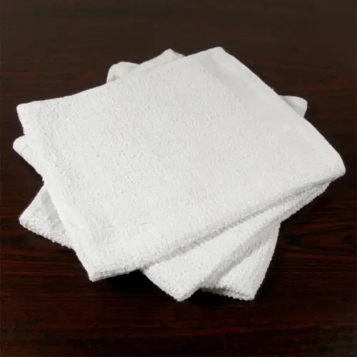 These ribbed terry, bar towels are made from 100% high grade absorbent cotton, and weight 24 oz. The unique "narrow-ribbed" construction offers much greater strength, durability and longevity than other bar towels, making it great for cleanup, cooking, and a variety of other kitchen uses. These bar towels are white, and measure 16" x 19". Sold in packs of 12.