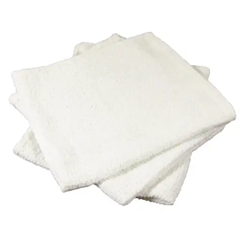 These ribbed terry bar towels are made from 100% high grade absorbent cotton. Their unique "narrow-ribbed" construction offers much greater strength, durability and longevity than other bar towels. These bar towels are white, and measure 16" x 19". Sold in packs of 12
