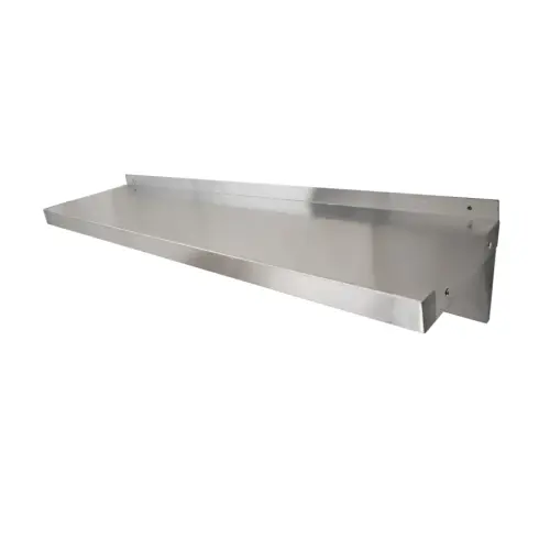 The solid wall shelf is constructed from 18 gauge 430 stainless steel construction with #4 finish. The matte finish and flush design is modern, yet efficient.