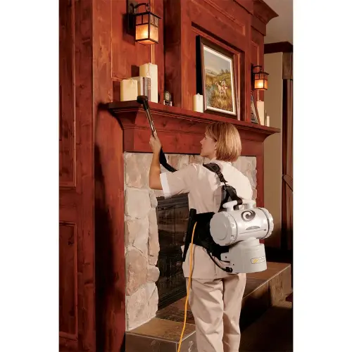 Keep your establishment clean and comfortable using the ProTeam 101293 TailVac 6 qt. hipstyle vacuum cleaner with standard 1.25 tool kit. Thanks to its mobile design, it's great for cleaning around and underneath furniture like chairs and tables! This easy-to-transport unit is ProVac’s lightest unit at only 8 lbs., and it is constructed without belts, beater bars, or brushes for maximum longevity and durability. It is equipped with a 1 to 3 foot stretch vacuum hose and two Micro Intercept filters that are up to 99.9% efficient at catching dust mites, pollen, bacteria, and other particles that are 1 micron or larger in size. A favorite of housekeeping services, this unit includes an integrated tool belt so that vacuum accessories are always within easy reach. Plus, its 50 foot extension cord ensures you can cover a large area of floor space before needing to find another outlet! The ProTeam 101293 TailVac with Xover tool kit requires a 120V electrical connection for operation and is CRI certified. Please consult the Specification Sheet for additional details and installation information. Standard 1.25 tool kit includes: - 24" to 40" chrome telescoping wand - 13" curved chrome wand - 13" crevice tool - 5 1/2" upholstery tool - 1 replacement removable upholstery tool brush - 2 1/2" dust brush (rectangular 90/180 swivel) - 1 cuff adapter
