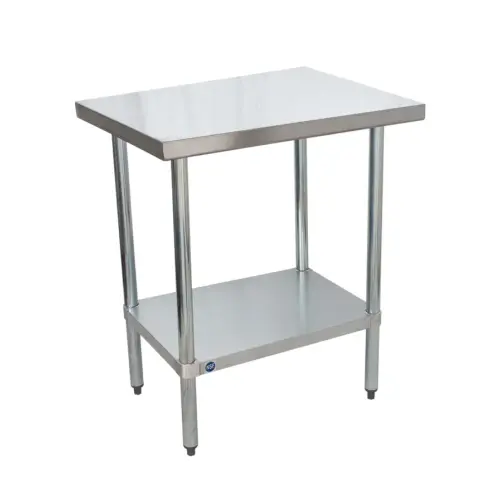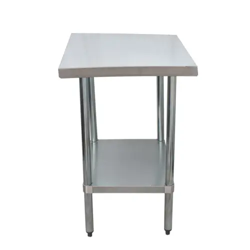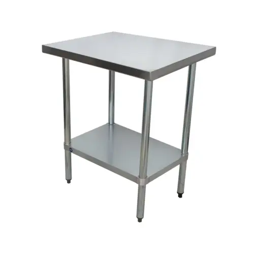 Universal WTF2430 24" x 30" stainless steel commercial work table with undershelf adds additional work space anywhere. Perfect for prepping, chopping, sorting, and assembling practically anything. The weight capacity, working height, and easy to clean table top is efficient and effective for organization. Optimize your work flow with this solid stainless steel commercial work table.
