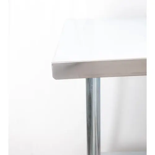 This commercial work table is a flat lip design which meets at 90° degrees. The edges are welded and grounded smooth, keeping your workplace safe.