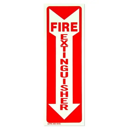| Item: | Universal 472E1101G - White on Red Glow-in-the-Dark Fire Extinguisher Adhesive Label with Arrow - 4" x 12" |