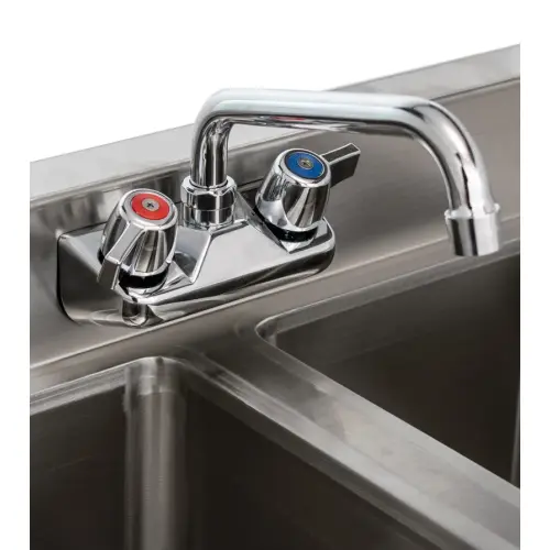 This 2 bowl underbar sink includes a 10” swivel faucet which is easy to install. The long spout with swivel feature allows you to clean all parts on the sink bowl.