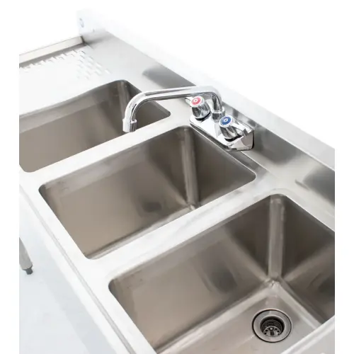 We bought this underbar 3 bowl sink and faucet primarily because of the two drainboards. The item did not disappoint on quality or price, but we did have trouble installing it because of a lack of directions. After we call Elite Restaurant Equipment someone helped us with instructions so everything worked out good.