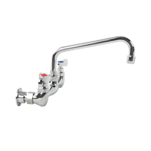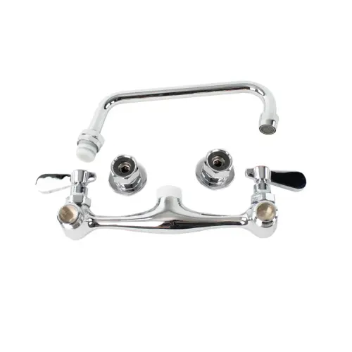 The Universal HSL-08 8” low lead wall mount swing spout faucet is great for cleaning up tasks around the kitchen. This wall mount faucet is compatible with all stand up commercial sinks that require a wall mount faucet. The flow rate of the faucet is 2 GPM, the connection is 1/2” NPT. The flow rate will fill up a sink quickly, great for dish washing or other cleaning tasks. This wall mount swing spout faucet fits 8” center holes on a sink.