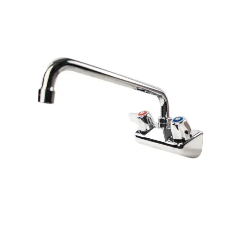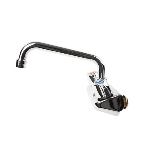 The Universal 8” low lead underbar sink faucet is great for clean up tasks in the kitchen. This wall mount faucet is compatible with all stand up commercial sinks that require a wall mount faucet. The flow rate of the faucet is 2 GPM, the connection is 1/2” NPT. The flow rate will fill up a sink quickly, great for dish washing or other cleaning tasks. This wall mount swing spout faucet fits 4” center holes on a sink.