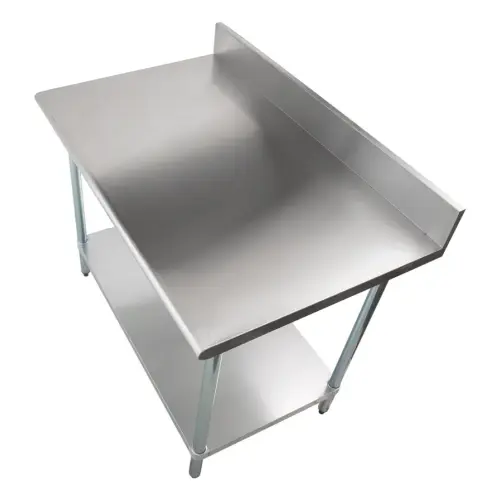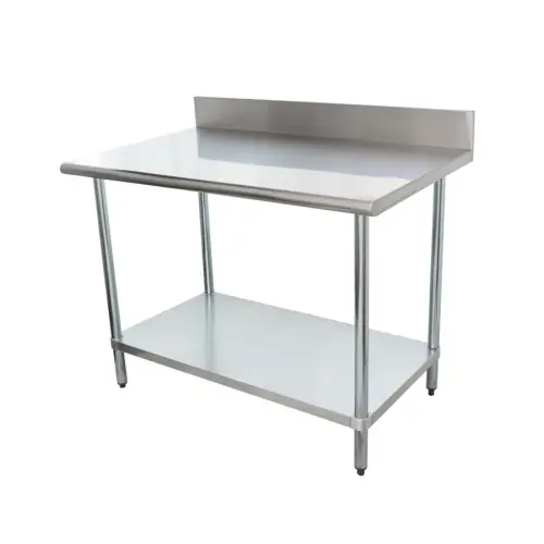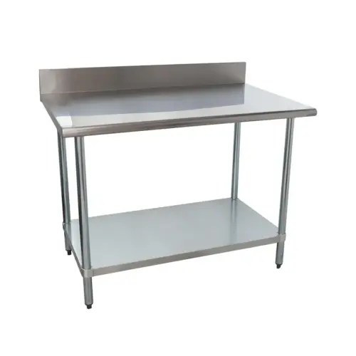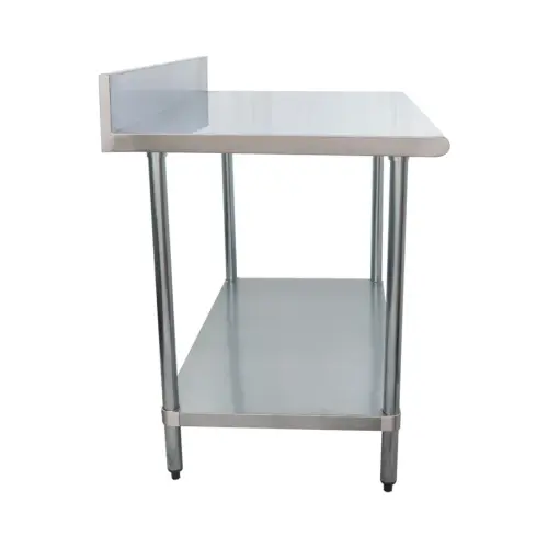 This 48 inch stainless steel work table with back splash adds work top space and adjustable undershelf storage.