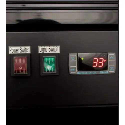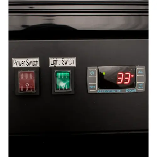 A easy to use dial control makes it easy to adjust the temperature in the glass reach in merchandiser as needed. This model also includes a separate switch for lighting. The digital display on the outside of the unit lets you see the temperature inside the merchandiser.